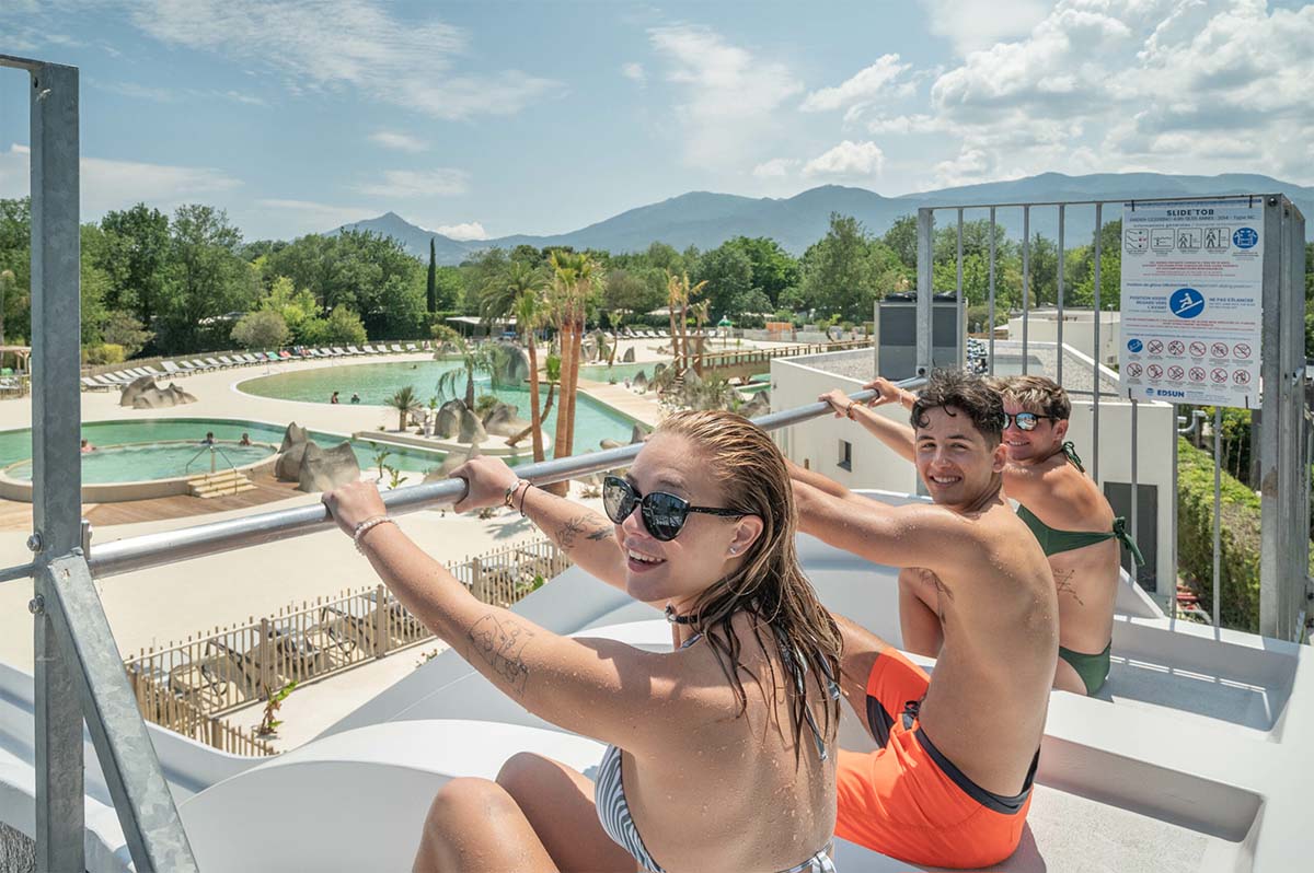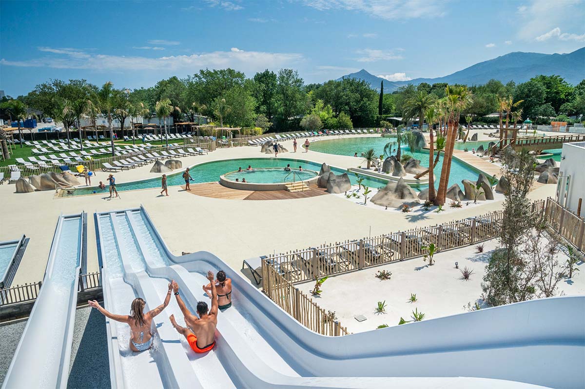 Camping Les Marsouins is just a mile from the centre of Argelès-sur-Mer, which is the premier destination in the Eastern Pyrenees. The mountain looming in the background is Canigou, the easternmost summit in the Pyrenees (2,784 m / 9,280 ft), visible wherever you are on the plains of Roussillon. Closer to the site, there’s a nature reserve at Sigean that will have you wondering whether you’re on an African safari: the animals roam free. You can also practice watersports in the area or make any number of sports excursions.