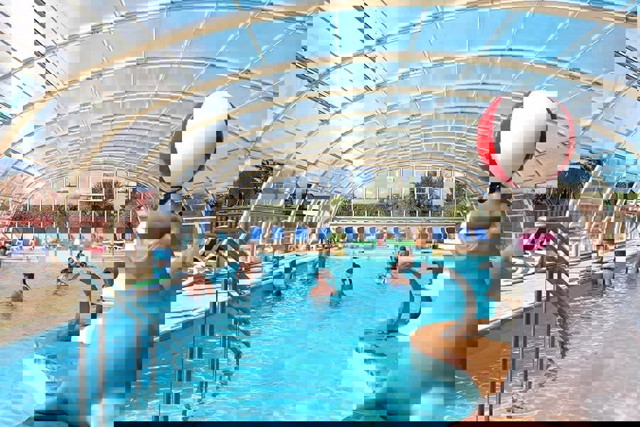 There is no shortage of facilities on the campsite. The beautifully landscaped pool complex offers heated indoor and outdoor swimming pools. Outside, there is plenty of water fun thanks to a great waterslide and a shallow toddler pool. Indoors, a wellness area with a spa bath and sauna awaits for total relaxation. Sporty guests can enjoy football, table tennis, petanque, or yoga. Additionally, there is a small animal park and a lively entertainment programme in the amphitheatre. In the on-site restaurant, one can enjoy fresh seafood and artisan wood-fired pizzas.